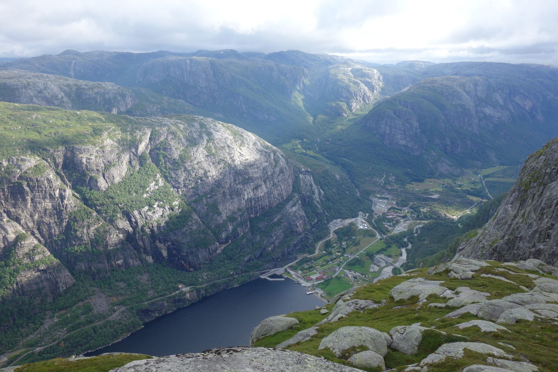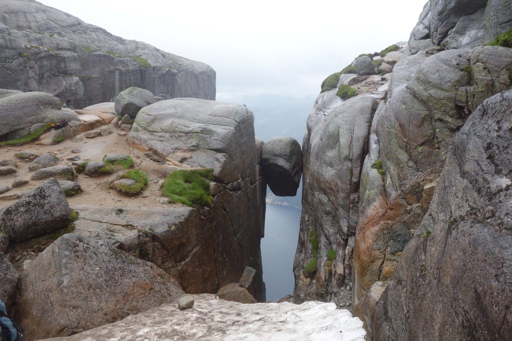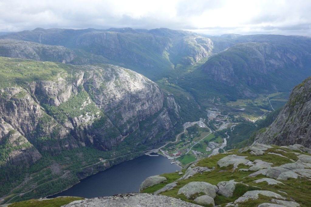Ebenfalls sehr Panoramareich gestaltet sich die Wanderung zum Kjerag. 1084 Meter misst der höchste Gipfel der Region am Lysefjord. Vom Hochplateau aus können Sie den Kjeragbolten bestaunen. Der Felsblock liegt eingeklemmt in einer Felsspalte, 1000 Meter über dem Lysefjord.
