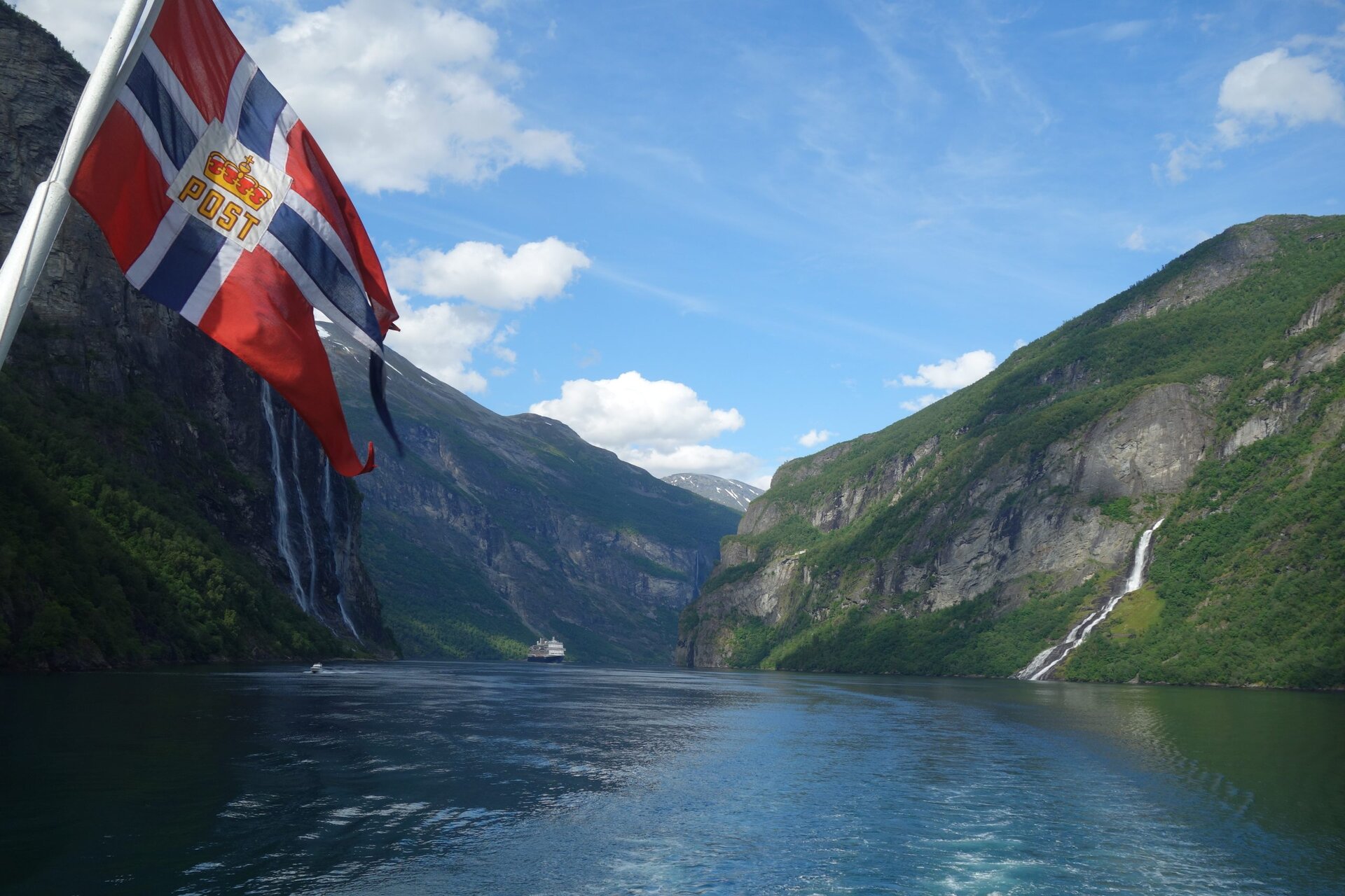 Der Geiranger bietet sicher einer der traumhaftesten Fjordlandschaften der Welt. Der tiefblaue Meeresarm wird von einer sattgrünen Landschaft mit schneebedeckten Berggipfeln gesäumt. Malerische Wasserfälle stürzen tosend von den steilen Felshängen und an die Ufern des Fjordes schmiegen sich heute oft verlassene Bergbauernhöfe. Zusammen mit dem Nærøyfjord gehört der Geiranger seit 2005 zum Weltnaturerbe der UNESCO.
