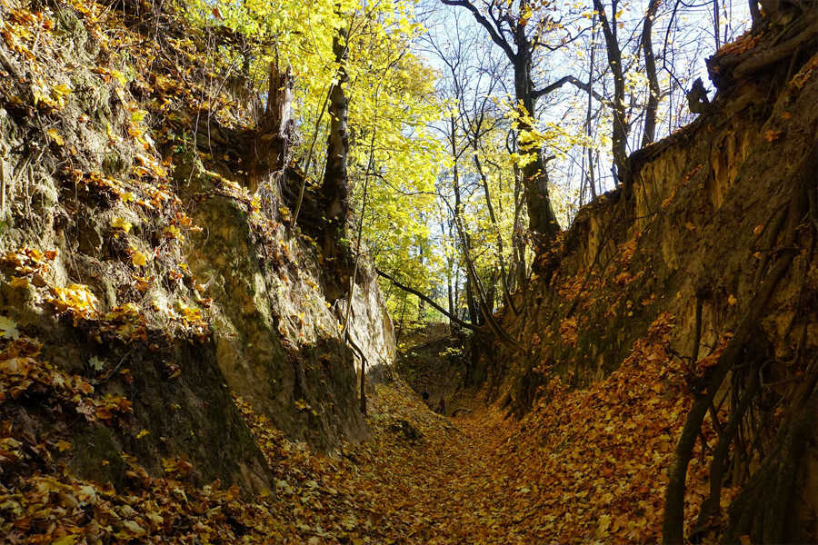 Mit dem Fahrrad geht es weiter entlang der Weichsel. Ziel ist Sandomierz. Bevor Sie die Stadt erreichen, empfehlen wir Ihnen einen kleinen Ausflug zu Fuß durch die Lösschlucht der Königin Hedwig zu unternehmen. In der rund 500 Meter langen Schlucht ragen die Hänge bis zu 10 Meter auf. Diese sind dicht mit Bäumen bewachsen, deren freihängende Wurzeln für eine urwaldartige Atmosphäre sorgen.