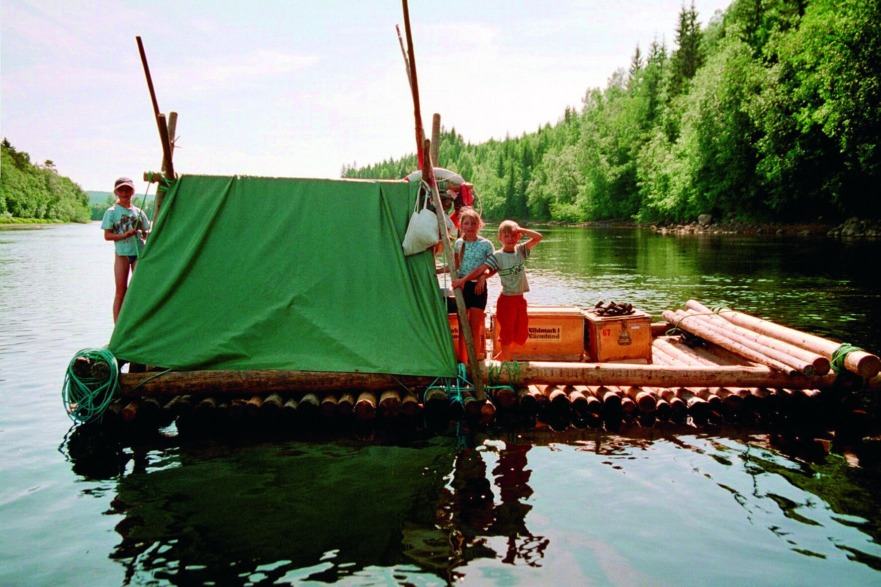 Danach erwartet Sie das nächste Abenteuer. Nachdem Sie bei einem erfahrenen Guide gelernt haben, wie man ein Floß zusammenbaut, kann die ganze Familie loslegen. Aus dicken Baumstämmen und Seilen wird unter weiterer Anleitung ein Floß gebaut. Wenn alles fertig ist, heißt es, wie bei Huckleberry Finn, die Welt per Floß zu erforschen. Mehrere Tage wird Sie dann das Floß den gemütlichen Klarälven – den „klaren Fluss“ hinuntertragen. Die gemächliche Strömung von Schwedens längstem Fluss bestimmt den Tagesablauf und Sie können der Hektik des Alltags entfliehen. Es bleibt viel Zeit für Aktivitäten wie: baden, angeln, lesen, Geschichten hören, Tiere beobachten, Biberburgen zählen, schnitzen, Beeren sammeln… Für Kinder gibt es wohl keinen schöneren Spielplatz als Wiesen und Wälder.