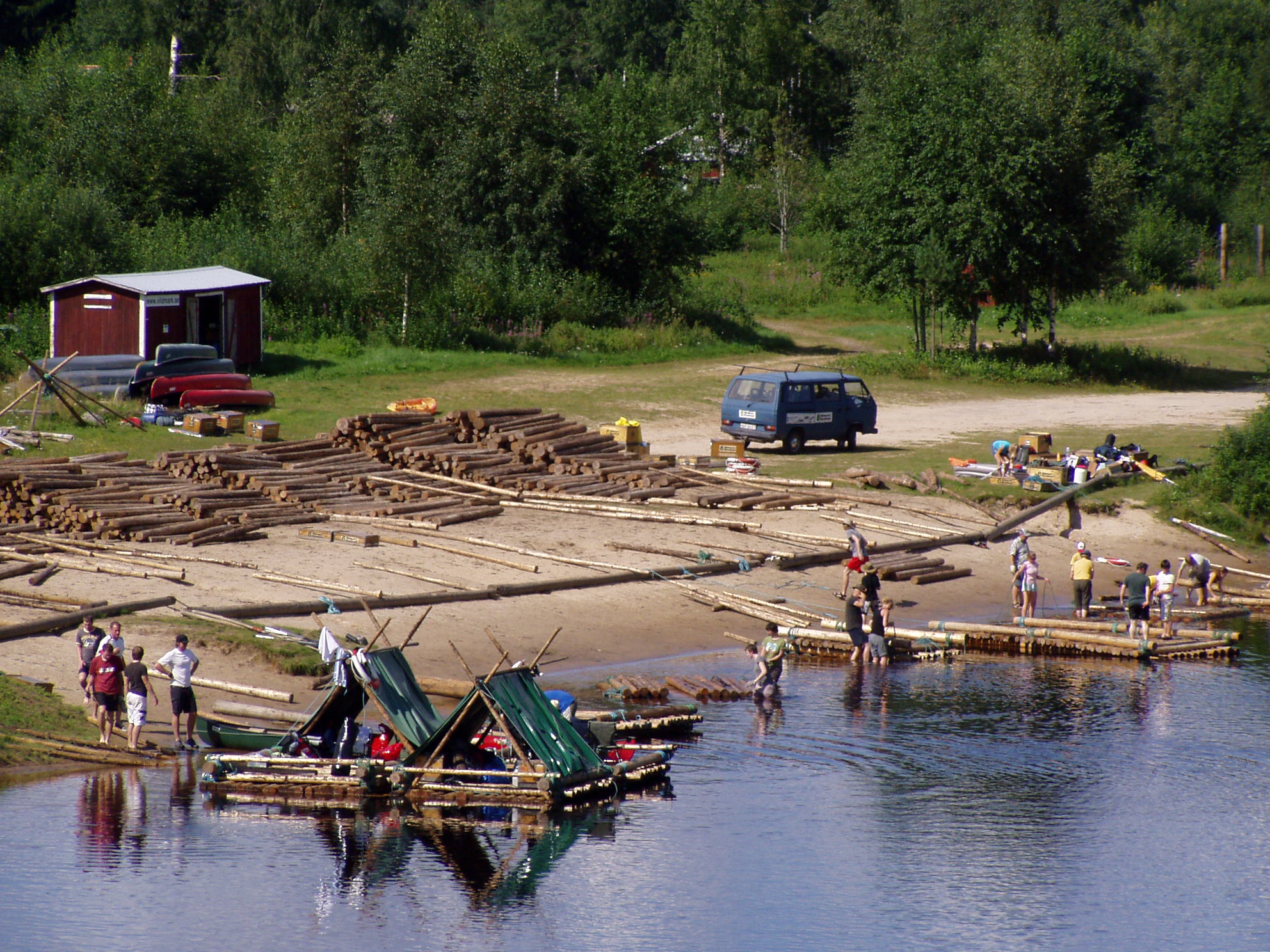 Noch einmal können Sie die schöne Flusslandschaft des Klarälven genießen: Mäander, waldbedeckten Berge am Ufer, offene Wiesen und Weiden wechseln sich im Verlauf des Flusses ab. Auf einer Strecke von 270 Kilometern fließt der Klarälven in nord-südlicher Richtung durch ganz Värmland. Ihr heutiges Ziel ist Stöllet. Hier übernachten Sie auf einem komfortablen Campingplatz mit einen großen Spielplatz. Der Rest des Tages steht Ihnen zur freien Verfügung.7. TagAufbau des Floßes